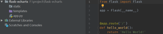 前面讲的是一个静态数据的展示的方法,用 pyecharts 和 Flask 结合最主要是实现一种动态更新数据,增量更新数据等功能!以上面讲解的内容为基础,在 templates 文件夹中新建一个 index.html 的文件,其中主要用到了 jquery 和 pyecharts 管理的 echarts.min.js 依赖。