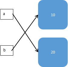 1 a = 10 2 b = 20 3 a,b = b,a