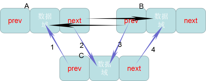 双向链表的插入和删除等等操作,都要注意,不要把存储的地址信息丢了,仔细考虑好两边的指向,先把谁链接上去,再链接谁。