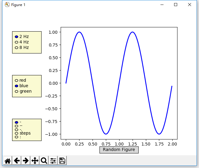 radio =RadioButtons(rax,('2 Hz','4 Hz','8 Hz'))
