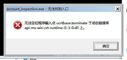 打开程序,报错提示:无法定位程序输入点ucrtbase.terminate于动态链接库api-ms-win-crt-runtime-l1-1-0.dll上,如图所示: