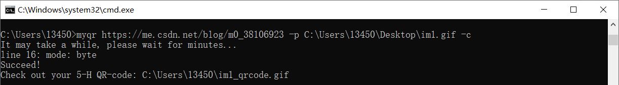 myqr https://me.csdn.net/blog/m0_38106923 -p C:\Users\13450\Desktop\im1.gif -c