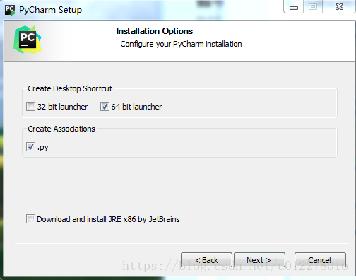然后会出现安装选择的界面就是配置你的Pycharm的安装,除了32位,其他的全部选中,点击Next。