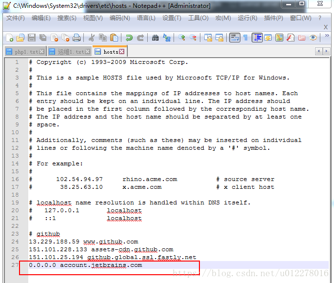 添加 “0.0.0.0 account.jetbrains.com” 字符串到 host文件中
