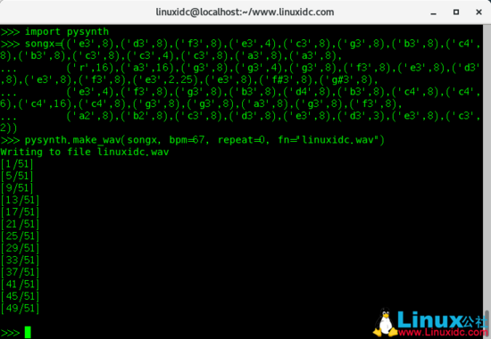 pysynth.make_wav(songx, bpm=67, repeat=0, fn="linuxidc.wav")