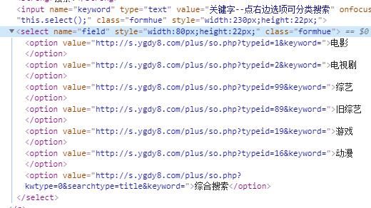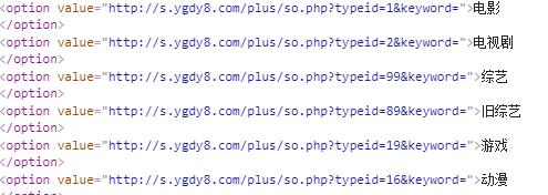 是由http://s.ygdy8.com/plus/so.php?+typeid=视频编号&keyword=视频名gdk编码组成。因此需要先转化汉字为网页地址url的编码。
