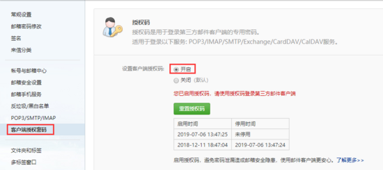 # 在邮箱中设置的客户端授权密码