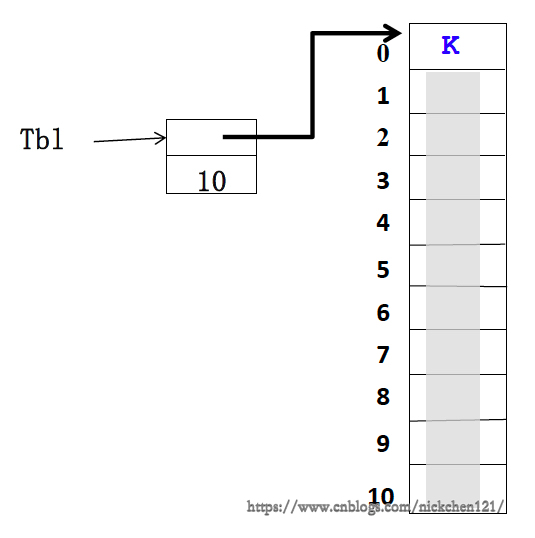 Tbl->Element[0] = K; // 建立哨兵,即没找到可以返回哨兵的索引0表示未找到