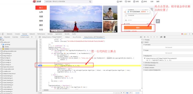 找到调用函数的位置,打上断点,再进行登录操作
