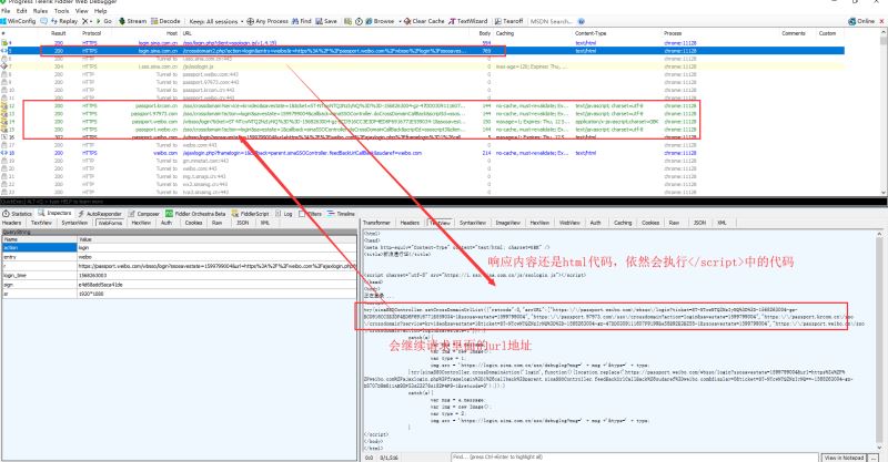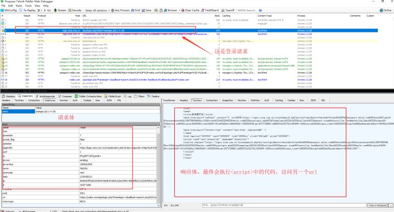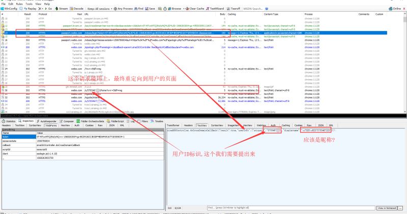打开fiddler,然后退出当前账号,重新进行登录操作。fiddler上面就会出现很多请求。找到需要的请求,看看响应内容