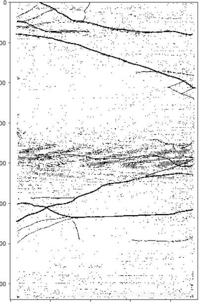 主要目标识别图中红色的裂缝,尝试了几种不同的方法,最后发现比较每一点的RGB差值可以很好的解决这个问题,也就是提取图片中的红色相关信息。处理结果如下: