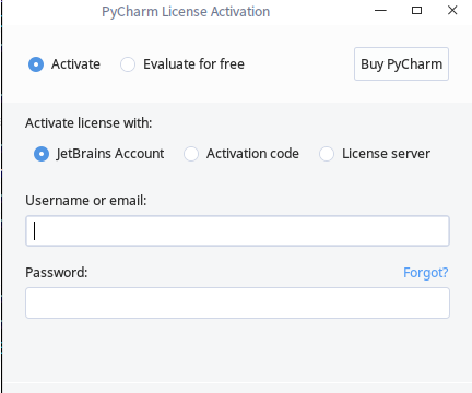 7.运行./pycharm.sh 出现激活框,选择Activation code并输入下面的激活码,点击激活ok