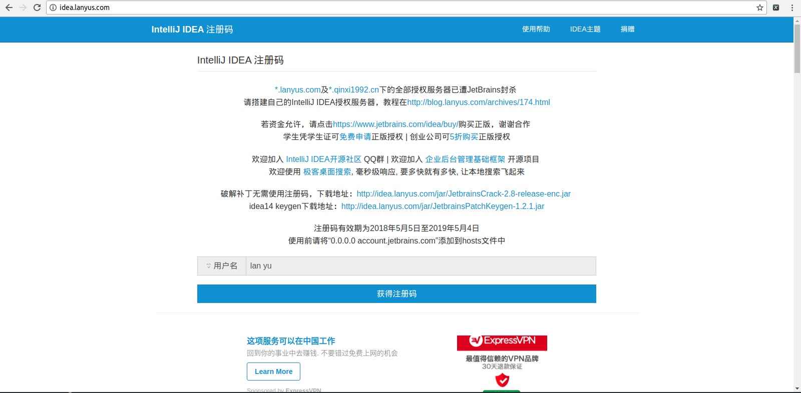 4.去下载破解补丁 http://idea.lanyus.com/