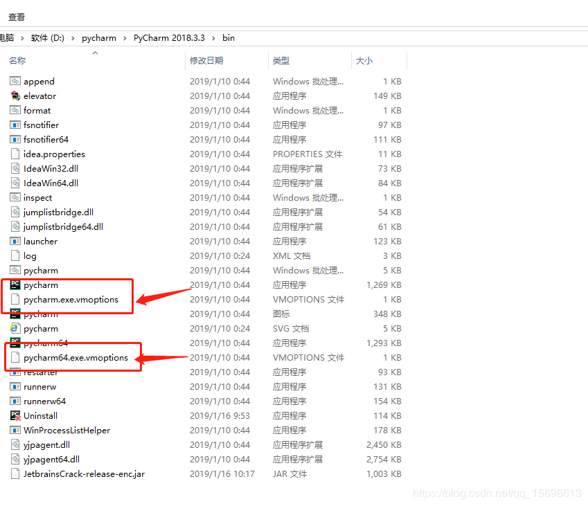 2.2 在 Pycharm安装目录的\bin目录下找到 pycharm.exe.vmoptions 和 pycharm64.exe.vmoptions