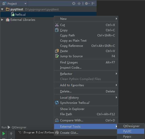 5,设置“PyUIC”-- 这个主要是用来将 Qt界面 转换成 py代码