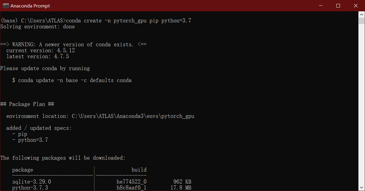 conda create -n pytorch_gpu pip python=3.7