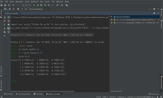 为了确保PyTorch是否安装成功,我们需要运行简单的样例代码测试,例如打印出随机生成的张量矩阵,以及gpu是否可以使用。