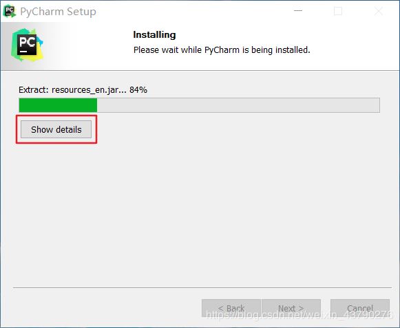 5.安装进度条开始读条,说明正在安装,(可以点击Show details看更多信息),什么也不需要做,等待安装完成就行了