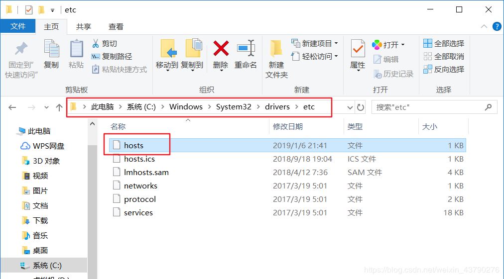 1.找到C:\Windows\System32\drivers\etc目录下的hosts文件,用记事本打开hosts文件