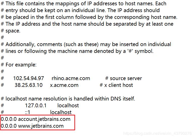 2.在hosts文件的最下方增加如下两行:0.0.0.0 account.jetbrains.com和