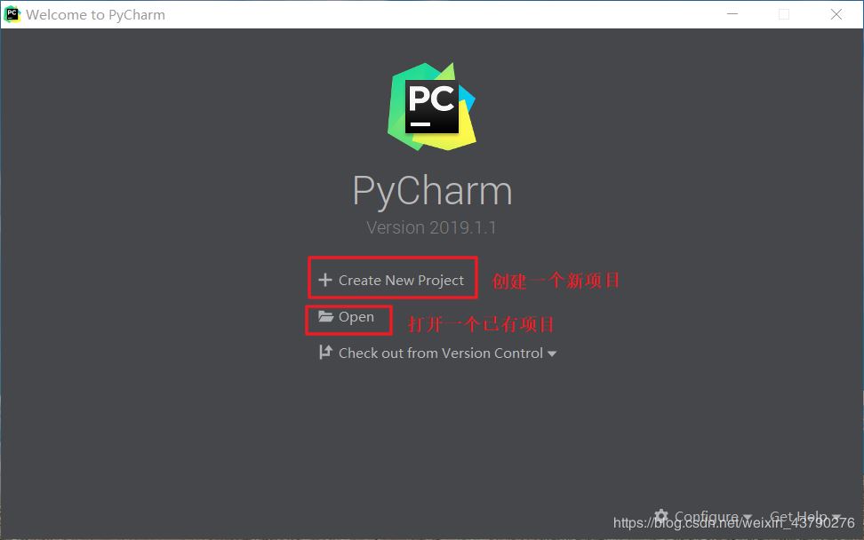 1.激活PyCharm后,可以Create New Project创建一个新项目,也可以直接点击Open打开一个已有的项目