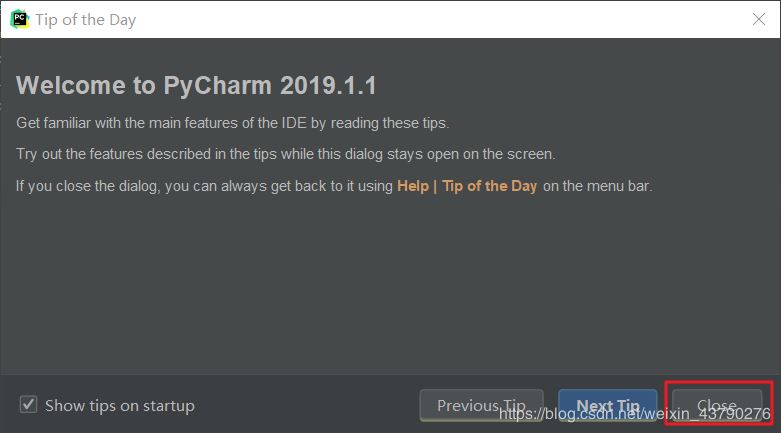 2.打开后,会进入欢迎页面,点击Close关闭,可能还会有其他信息的框,都点击关闭就行了