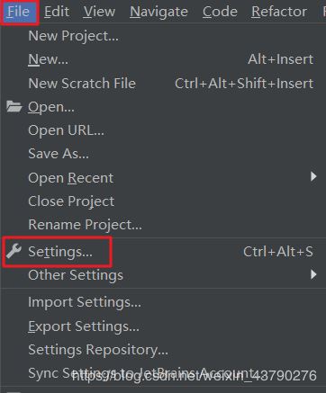 4.点击左上角的File,然后在下拉菜单中点击Settings...