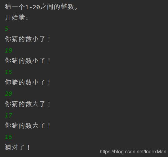 给你6次机会猜对一个预先生成好的1-20之间的整数。覆盖一下知识点: