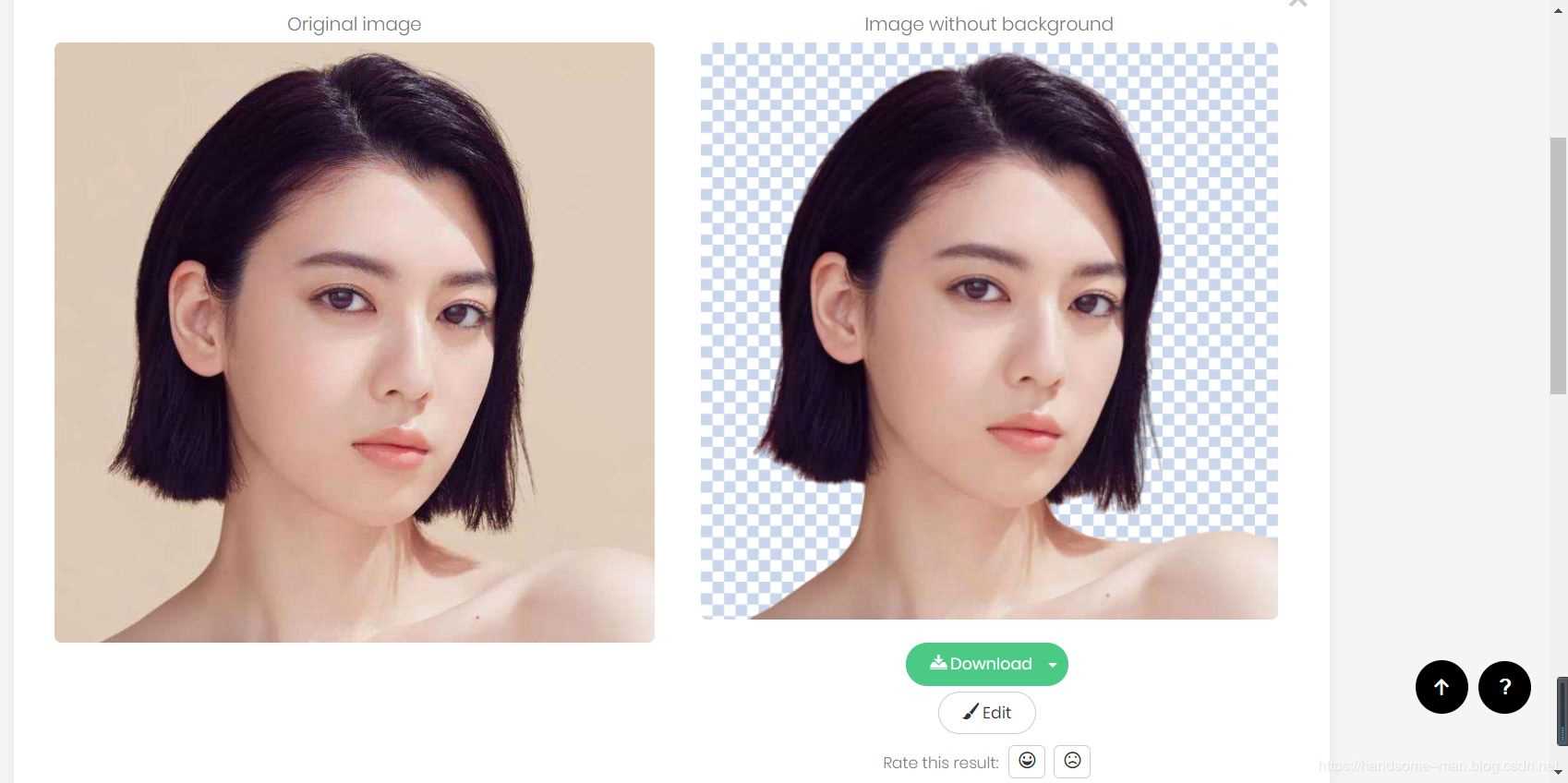 第2步:上传成功后,平台仅需几秒钟实现自动抠图,可直接下载无背景透明的图像照片,也可对图像照片进行编辑。
