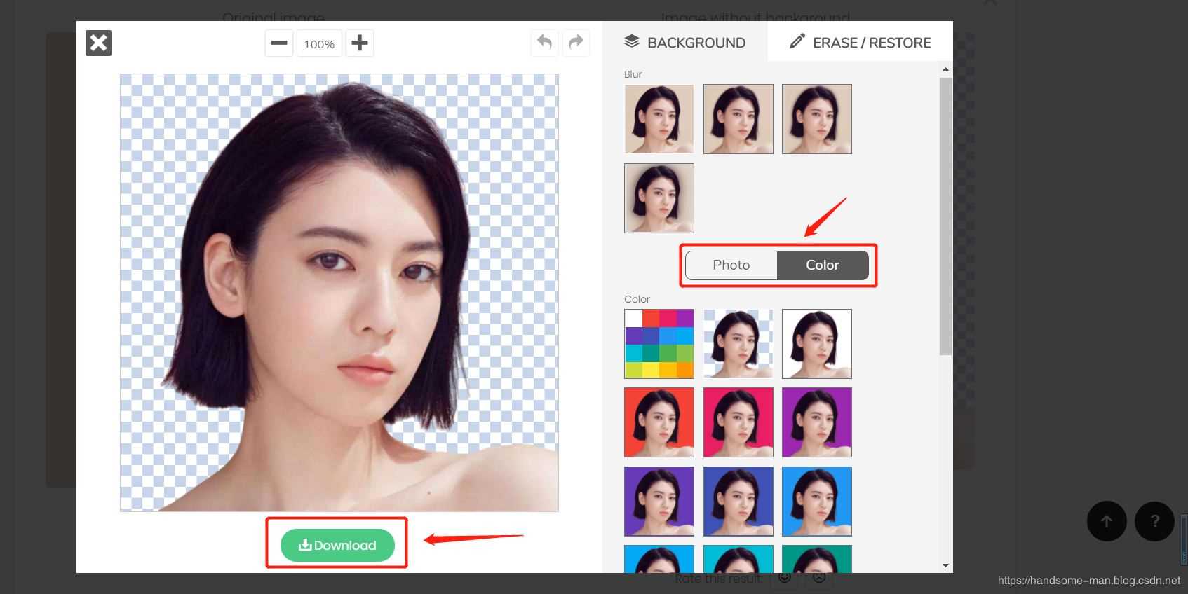 支持对图像照片进行调整滤镜和换底色,完成后直接下载即可。