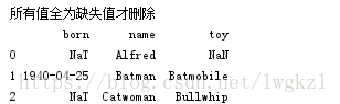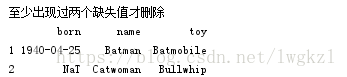 print "删除这个subset中的含有缺失值的行或列" print df.dropna(subset=['name', 'born'])