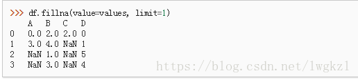 limit:确定填充的个数,如果limit=2,则只填充两个缺失值。