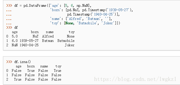缺失值:在dataframe中为nan或者naT(缺失时间),在series中为none或者nan即可