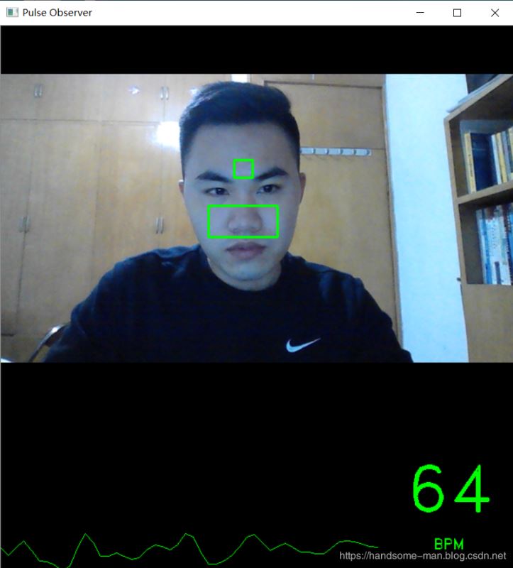 由于这是通过比较面部色素的变化评估脉搏所以光线、人体移动、不同角度、不同电脑摄像头等因素均会影响评估效果,实验原理是面部色素对比,识别效果存在一定误差,各位小伙伴且当娱乐,代码如下: