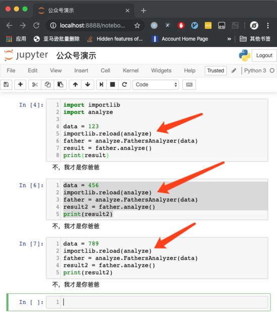 这样写以后,任意一个 Cell 运行,所有被 %aimport 导入的模块都会被重新加载一次。从而让你每次都使用最新的代码。