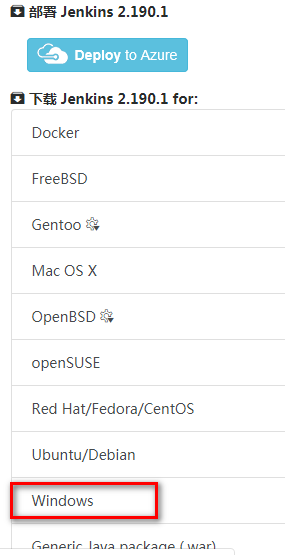 1.首先安装jekins环境,访问网页https://jenkins.io/zh/download/,下载长期稳定版如下: