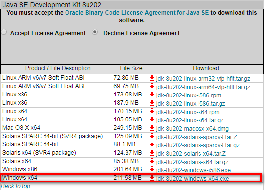 3.下载JDK,访问java官网https://www.oracle.com/technetwork/java/archive-139210.html,选择下载常用的java开发环境JDK1.8版本;
