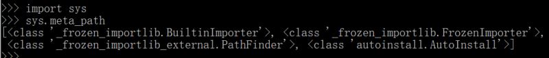 这段代码中使用了sys.meta_path ,我们先打印一下,看看它是个什么东西?