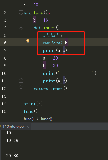 因为b是局部变量,所以调用之前用nonlocal声明,之后就可以调用了。