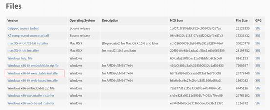 executable installer:程序安装。下载的是一个exe可执行程序,双击进行安装。