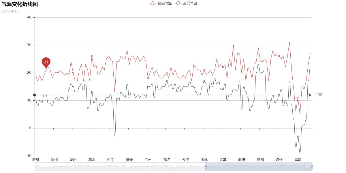 line.add("最高气温", cities, highs, mark_point=['average'], is_datazoom_show=True)