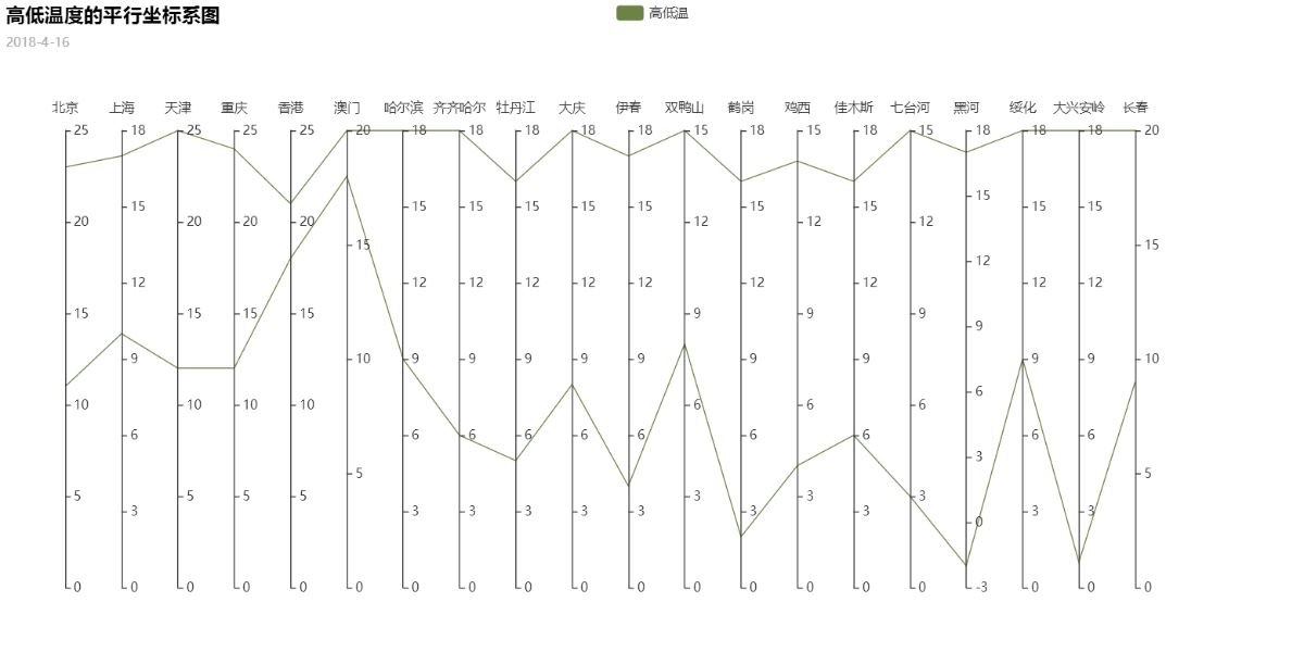 parallel = pyecharts.Parallel("高低温度的平行坐标系图", '2018-4-16', width=1200, height=600)