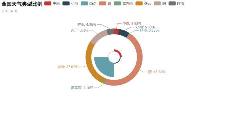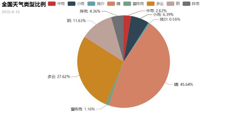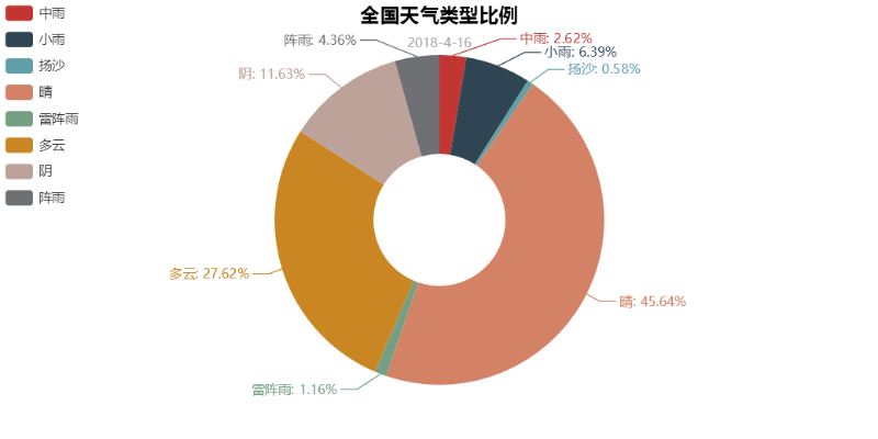 pie = pyecharts.Pie("全国天气类型比例", '2018-4-16')