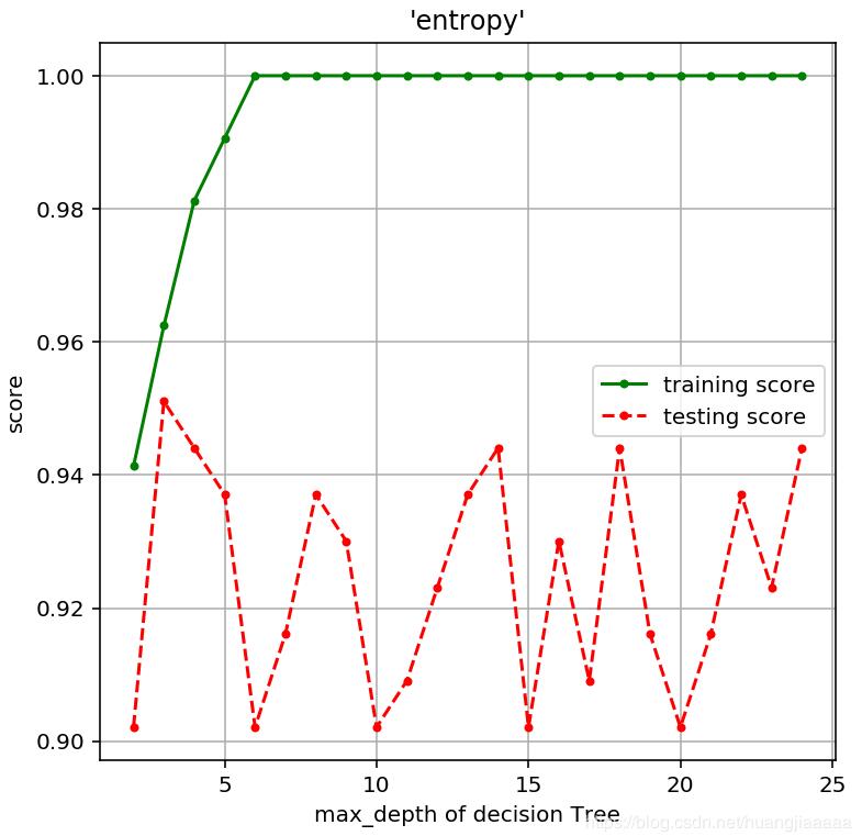 # 参数选择 max_depth,算法选择基尼不纯度算法(gini) or 信息熵(entropy)