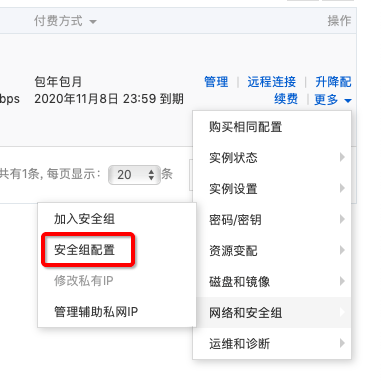 购买成功之后添加安全组(设置可访问端口,不知道怎么设置的,网站有文档,这里不赘述了)