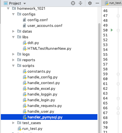 handle_pymysql.py: 该文档封装的是数据库的连接以及数据库的查询等相关操作方法。
