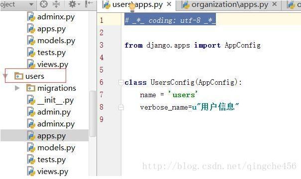 在users的app中的init.py文件中加入