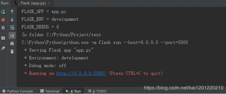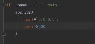 修改host='0.0.0.0',port=8000后保存运行,发现运行结果依旧是localhost:5000端口