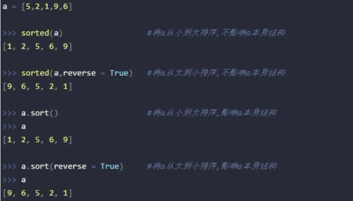 注意a.sort()已改变其结构,b=a.sort()是错误的写法