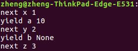 可以看到实际上y=r.send(10) 的参数10是赋给了a。整个运行过程即执行x=next(r) 之后,gen()执行了yield 1 然后暂停,没有进行对a的赋值。但再调用y=r.send(10) 时赋值过程继续,并把10赋给了a.